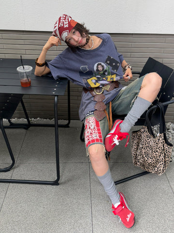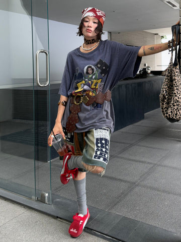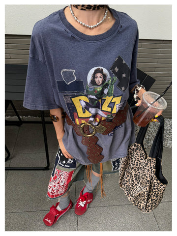 Vintage Punk Distressed Faux-Patch Print Tee - Rebel With a Cause」 - s