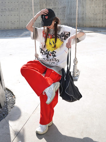 Whether you’re hitting the streets, a concert, or just lounging in style, this distressed smiley tee adds an instant dose of attitude to any outfit. Pair with ripped jeans, cargo pants, or layer under a flannel for an edgy, off-duty look.
