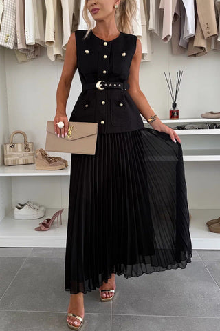 2025 NEW Chic Sleeveless Vest Pleated Skirt Set Sale