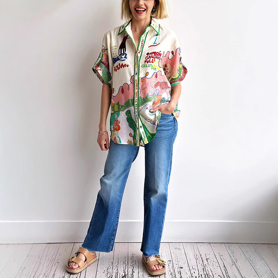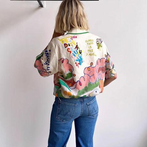 Inform when this item available: 2025 NEW Graffiti Linen Shirt New Euro Style Bold Prints - As Shown / XL