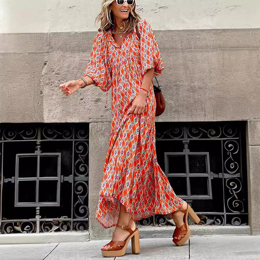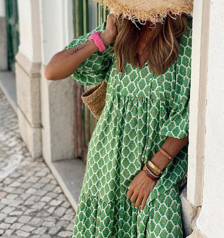 Inform when this item available: 2025 NEW Summer Bohemian Digital Print Maxi Dresses - Dark Green / Medium