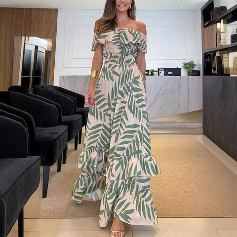 Inform when this item available: 2025 NEW Summer Print Maxi Dress Vacation Ready Chic - Green / Large