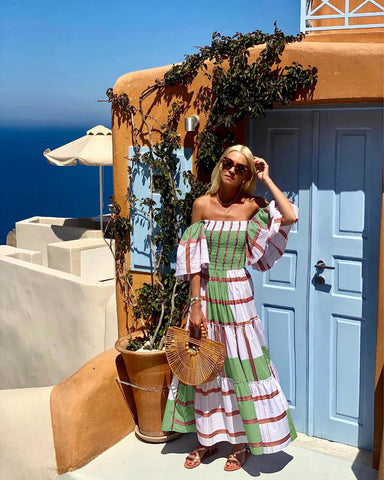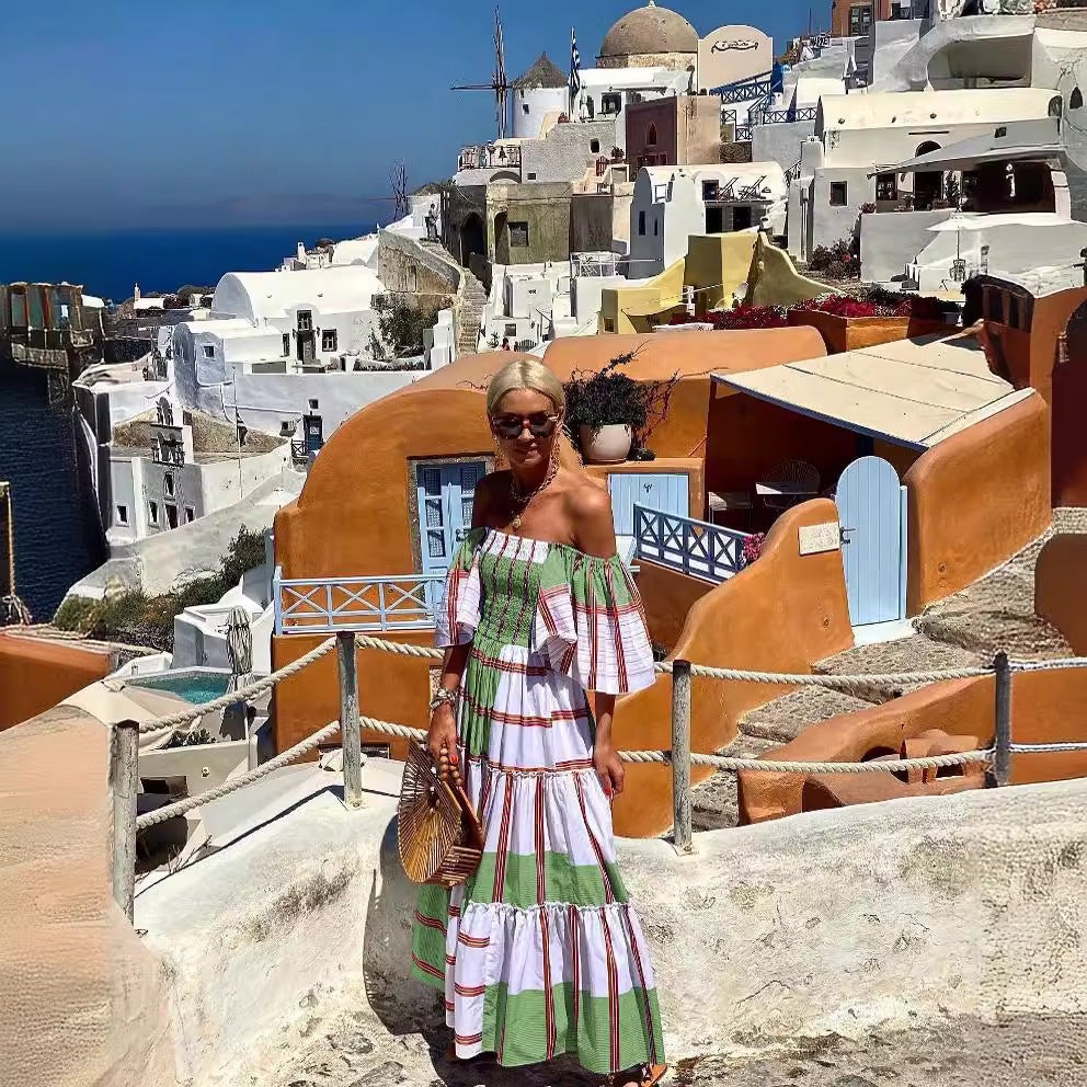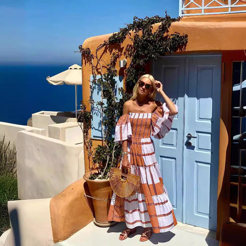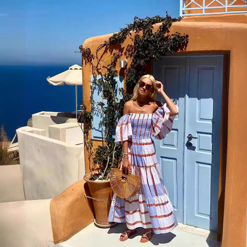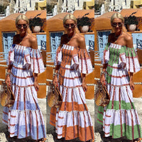 Inform when this item available: 2025 NEW Summer Stripe OffShoulder Maxi Dress - Brown / XL